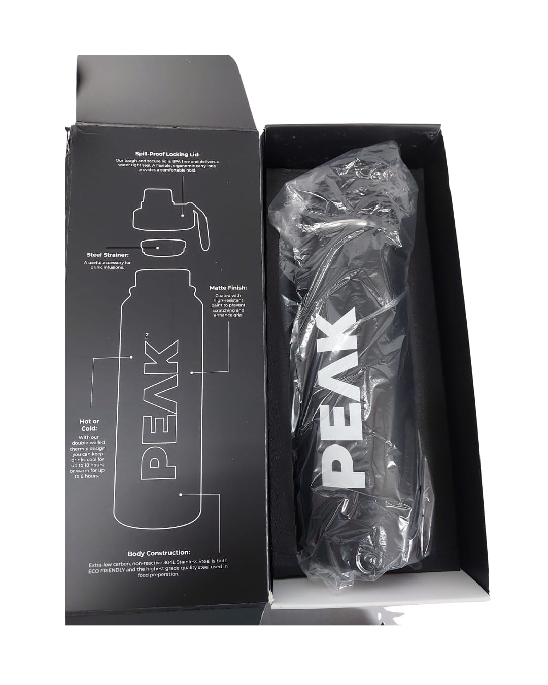 Matte black finish with a bold PEAK logo – sleek, modern, and built to last. -
