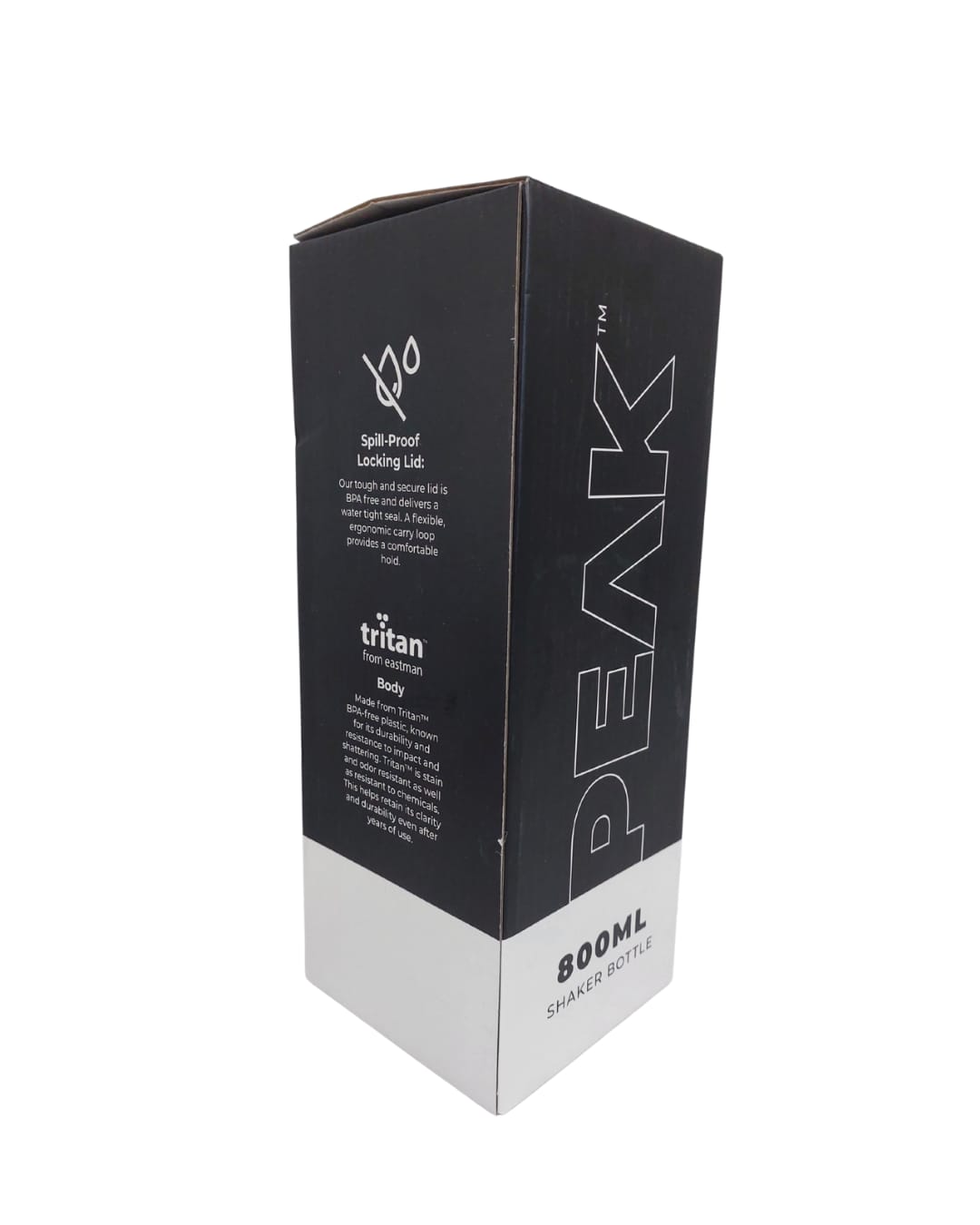 Fuel your day with the PEAK Daily 800ml Shaker Bottle, built for performance, style, and convenience. Whether you're mixing protein shakes, staying hydrated, or blending your favorite supplements, this Tritan plastic bottle is your go-to fitness companion.